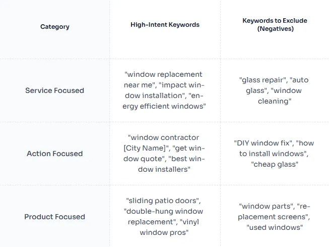 Aggressive Negative Grooming: We filter out low-value terms like "glass repair" or "DIY" so your budget is reserved for full replacement projects.
